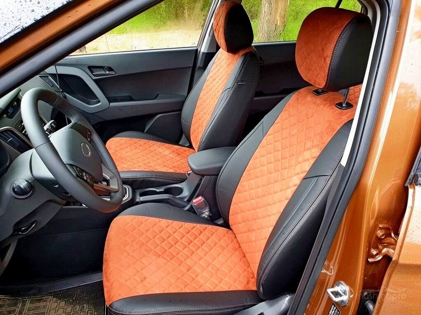 Материал очень хороший, а главное – плотный (к слову, вы можете выбрать любое сочетание цветов материалов и нитей). Радует разнообразие моделей, изготовленных по последним модным тенденциям. Как бонус – в салоне будет приятно пахнуть, ведь авточехлы издают приятный аромат.