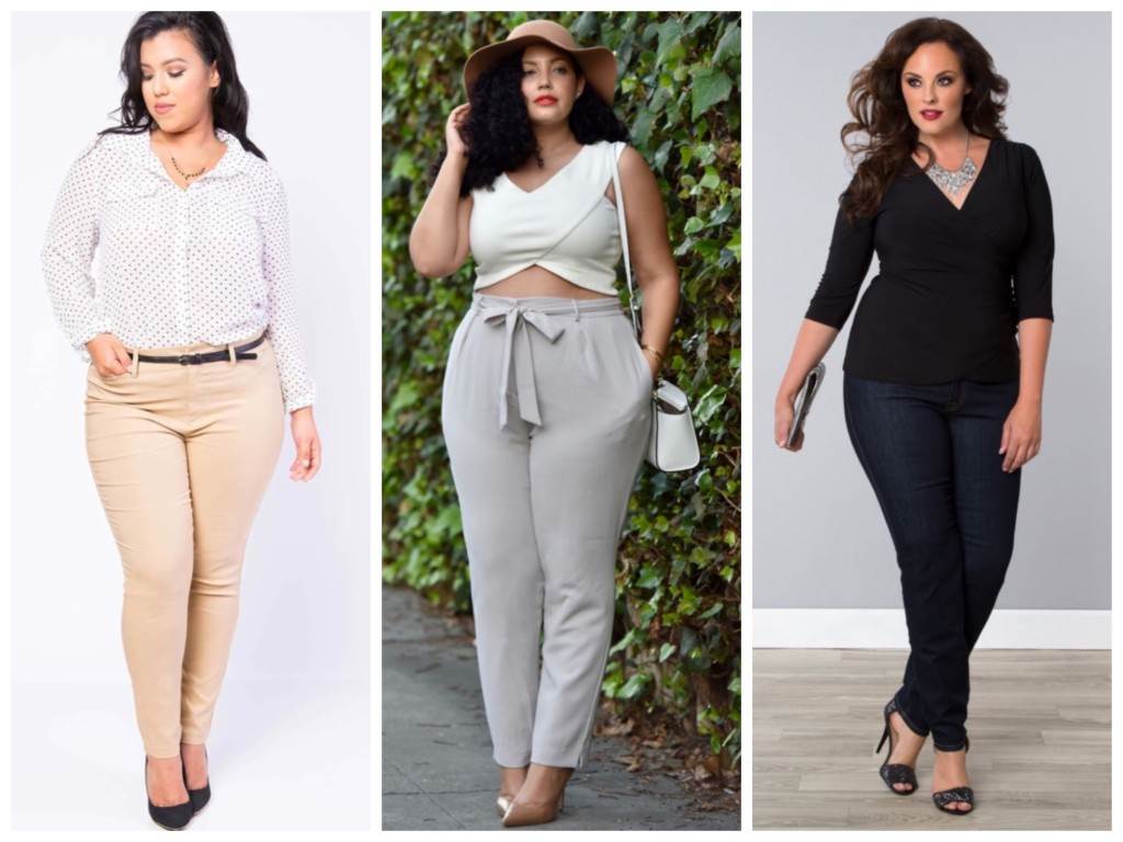 Пышнотелым модницам важно избегать узких в поясе и бедрах брюк. Укороченные фасоны – не самый лучший выбор, так как подобные модели полнят и зрительно укорачивают ноги, а дамам с формами это абсолютно ни к чему