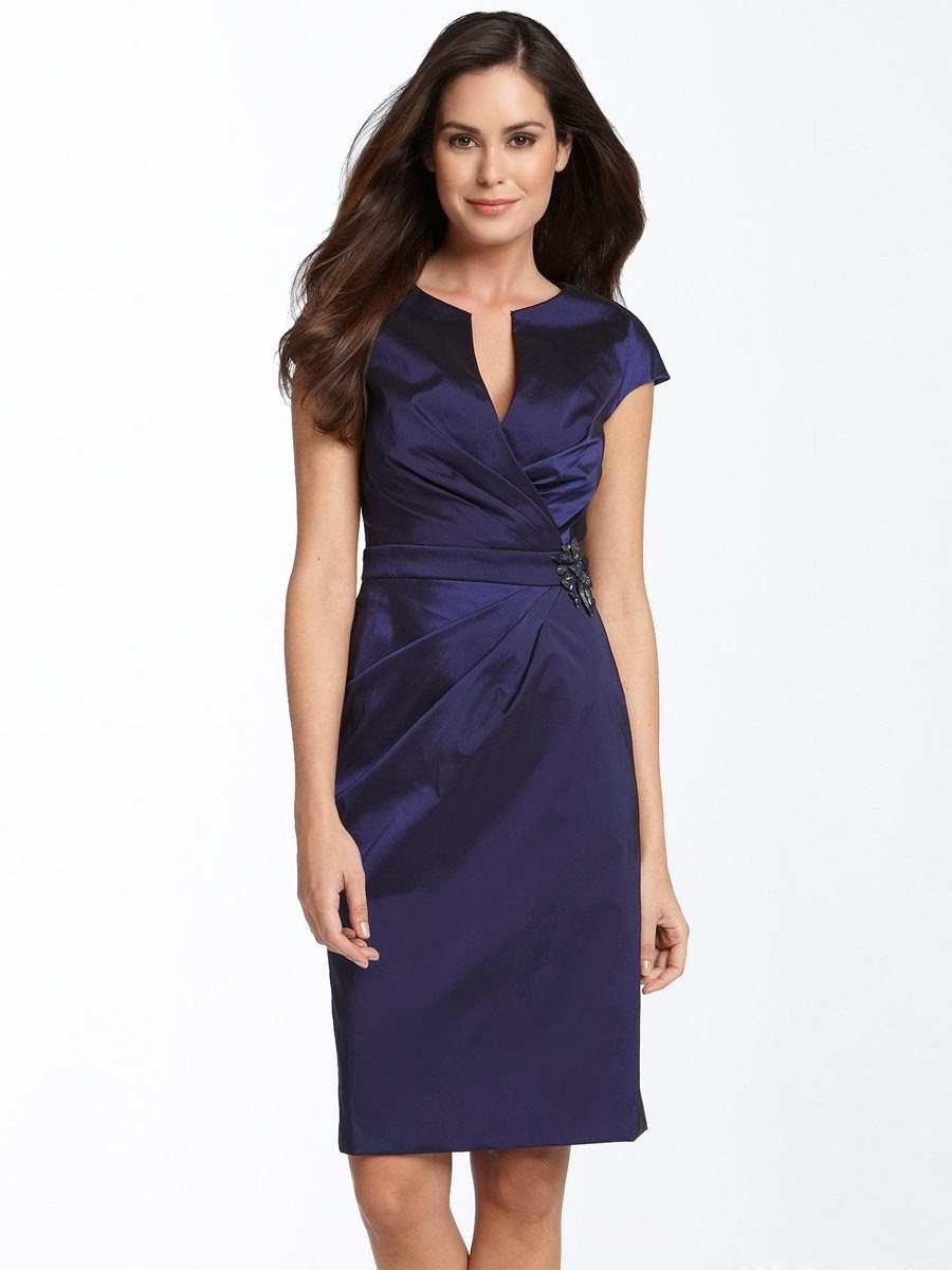 Фасоны выше колен позволяют показать красоту стройных ног. Можно шить модели А-силуэта, с пышной юбкой. Популярны короткие платья с бретелькой на одном плече. Для танцевального вечера подойдут фасоны нарядов с воланами, каскадными юбками. Прямой силуэт используют как повседневно, так и в праздничных мероприятиях.