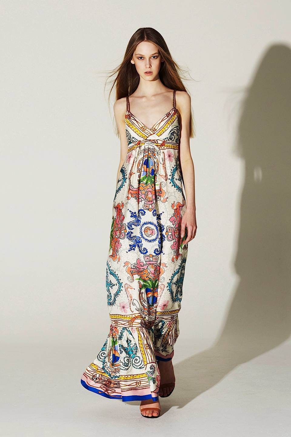 Шелк никогда не перестанет привлекать дизайнеров, которые желают разбавить свои коллекции чем-то классическим, но с исполнением на новый лад. Длинные платья с летящими юбками позволяют передать всю красоту и богатую фактуру натуральной ткани.