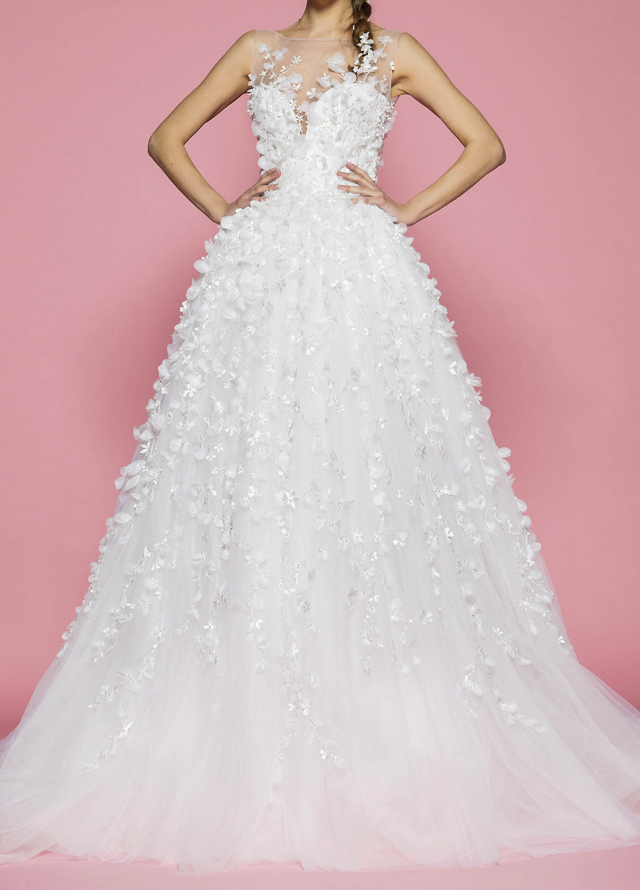 Вridal от Nicole Spose – настоящие шедевры. Бренд позиционирует себя как один из лучших итальянских домов, специализирующихся на подвенечных костюмах. В наступающем году она предложила более сдержанные луки, если сравнивать с ее изумительной фактурой текущего года. Новые формы более целомудренны, сдержаны, невинны. Нотки сакуры напоминают о предназначении как одежды, так и самой невесты – от слова «неизведанная», то есть непознанная, неискушенная.
