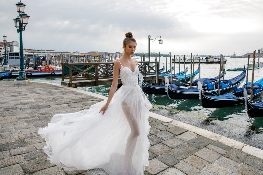 Свежая работа израильского кутюрье Julie Vino, который каждый сезон радует нас сказочными фотосессиями в самых живописных уголках мира. Если ранее был избран райский остров Santorini, то bridal-2018 была вдохновлена автору Венецией. Невеста Julie Vino это некая неуловимая сказочная жар-птица, украшенная тончайшими кружевами ручной работы с восточными орнаментами. Многие варианты имеют яркие акценты, напоминающие известные узоры венецианских масок. Изысканные выразительные узоры являются отличительной чертой этого мастера, и в новых работах их хватает сполна. Сказочные чудо-птицы словно слетели с райского сада в этот грешный мир – дизайнеру удалось создать целый ряд непохожих друг на друга, но одинаково завораживающих шедевров, сшитых с изумительным искусством и роскошью.