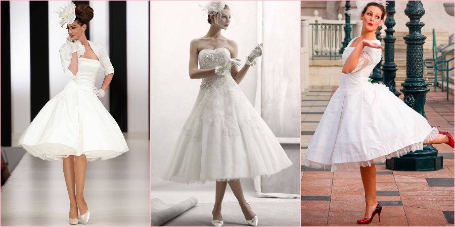 Замечательно подойдут для невест, любящих ретро-стиль, стоит лишь дополнить платьице короткими перчатками, цветным пояском или вуалью.