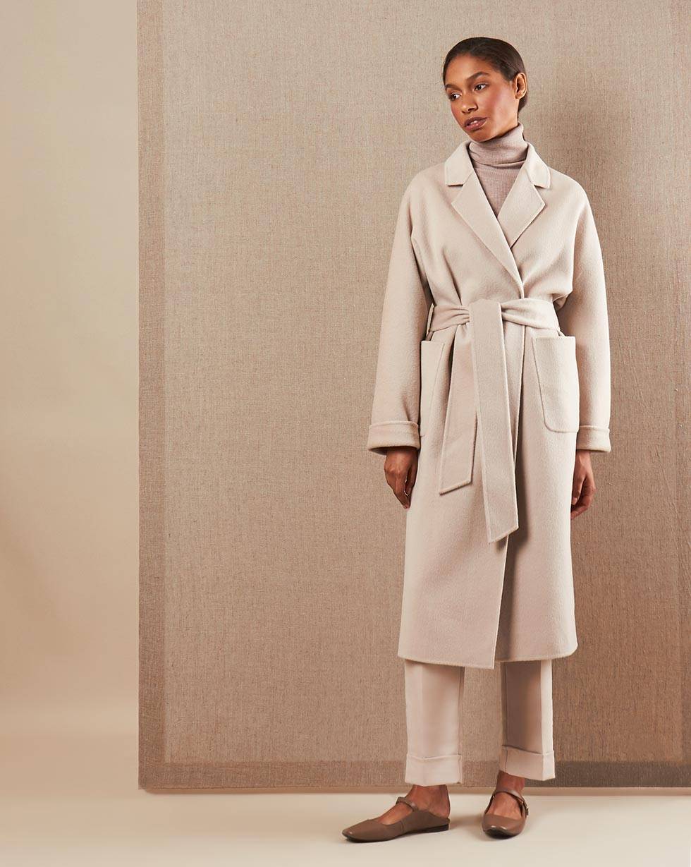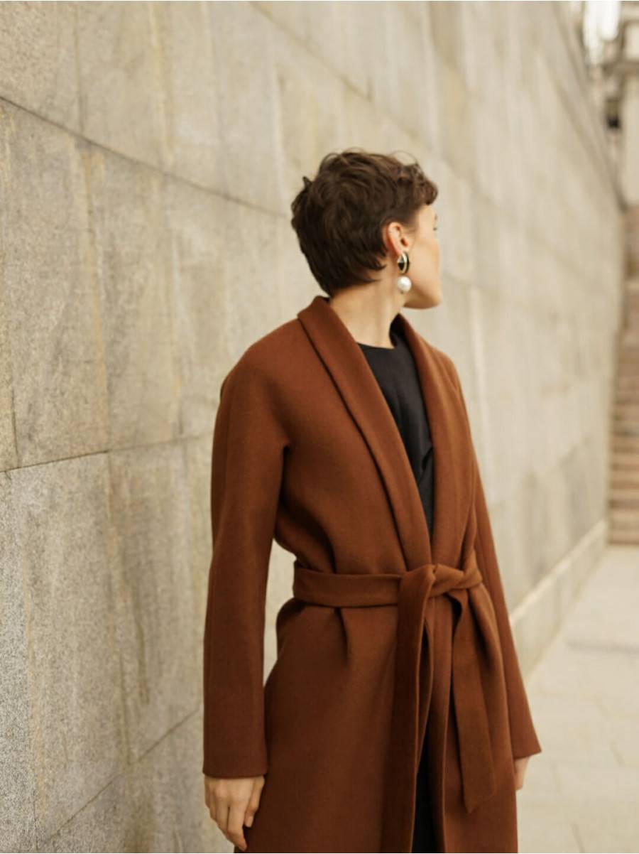 Прежде чем рассмотреть, с чем и как носить пальто-халат, стоит акцентировать внимание на его актуальных модификациях