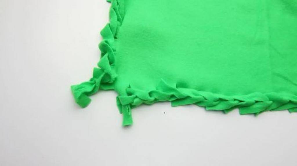 После этого решите, будете ли вы завязывать или переплетать края. Если вы выбрали первый вариант, то все, что вам нужно сделать, это соединить верхнюю и нижнюю ткань, связав их. Для закрепления материала сделайте двойной узел.