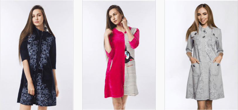 Ассортимент товара чрезвычайно широк! Помните, что ваш новый халатик, будет он махровый или велюровый, должен полностью отображать ваш вкус, подчёркивать достоинства, скрывать недостатки и качественно выполнять свои функции. Пусть он будет для вас самым удобным и самым любимым!