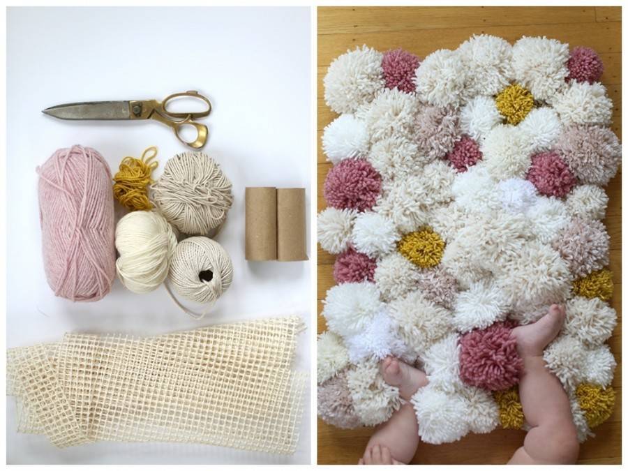 Кроме этих способов не сложно сделать коврик из бантиков, помпонов, жгутов, ремней, толстой пряжи или даже обычных подручных материалов и т.д.