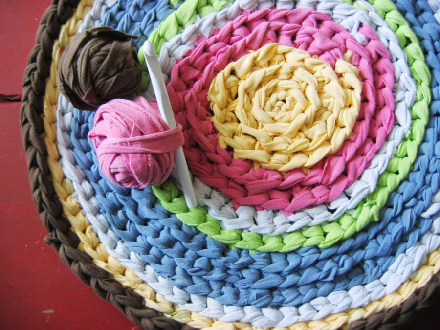 Наверное, есть еще несколько способов вязания ковриков из самодельной трикотажной пряжи. На самом деле процесс очень творческий и каждый раз получается новый результат. Даже если хочется, повторить «как было» получается не всегда. Что-то отличается.