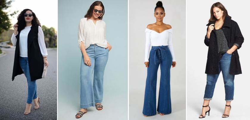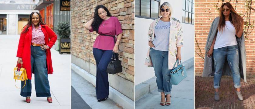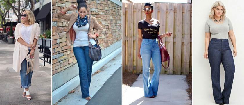 • Если у вас животик и объемные бедра, отлично сядут и прямые, и широкие, и бойфренд джинсы: они скроют лишние килограммы, не привлекут внимания к животу, талии и бедрам.
