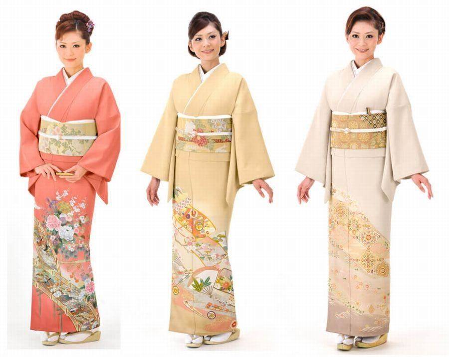 Раньше в кимоно входили белье, обувь и носки, а для каждого случая у женщин был отдельный комплект. Со временем все поменялось и теперь под этим понятием подразумевают объемный халат с широким поясом на талии. Костюмы бывают разной длины, модели, цвета и ткани. Традиционный вариант – это Т-образный фасон с воротом до щиколотки.