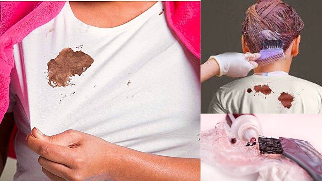 Иногда дамы, окрашивая волосы дома, случайно загрязняют одежду. Пигмент стремительно поглощается нитями. Чтобы вывести свежие разводы с ткани, на загрязнение брызгают лаком для волос, а липкие остатки убирают влажной ветошью. На светлом хлопке брызги поливают нашатырным спиртом или перекисью водорода. Спустя полчаса стирают и прополаскивают. Пятна на джинсах увлажняют, обильно посыпают содой и поливают уксусом (9%). Когда сода прекратит шипеть, джинсы стирают.