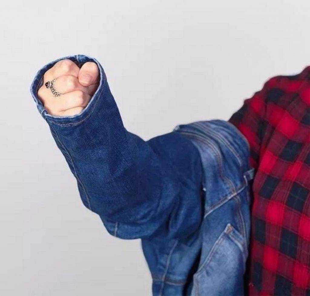 Большие джинсовые куртки и бомберы опять актуальны на волне интереса к 90-м. В женском отделе они обычно все-таки маленькие и приталенные, да ещё и декорированные – как минимум вышивкой. А в мужском можно взять любую – будет то, что нужно.