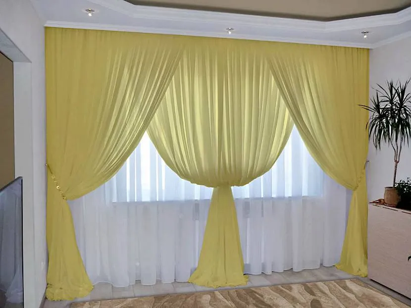 Традиционная комбинация представляет собой сочетание легкой тюлевой гардины и тяжелых портьер. Современные дизайнеры, тем не менее, чаще предпочитают использовать легкую полупрозрачную ткань поверх более плотной основной материи, что придает убранству окна глубину и выразительность.