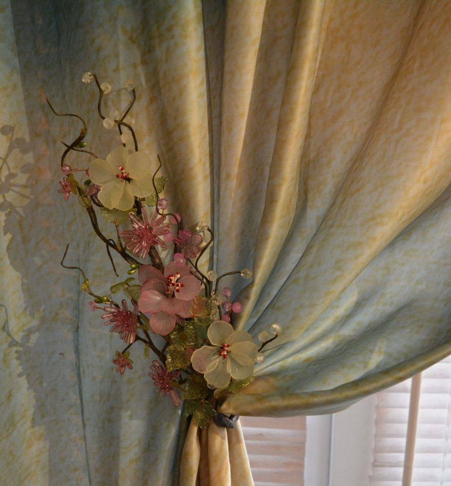 Удачно подобранные подхваты в виде бутонов обязательно создадут в комнате уют и праздничное настроение