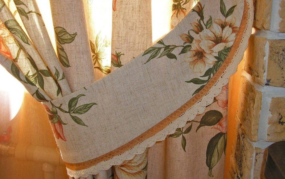Выбор материала ориентирован на дизайн интерьера. В классическом стиле рекомендуется повесить шторы с тканевыми подхватами. Любительниц гламура привлекут сверкающие бусины. Строгость и лаконичность дополнят цепочки или монохромный пластик. Прованс и кантри красиво сочетаются со шнурами и кружевом. Фото, где шторы дополнены декоративными подхватами, демонстрируют разнообразие решений, как красиво повесить текстиль на окна.