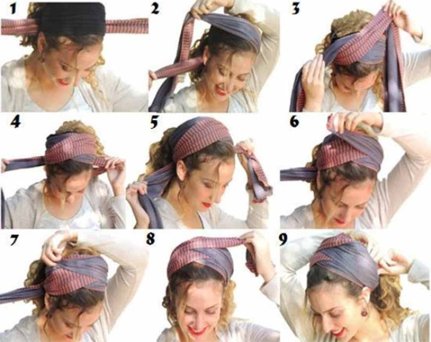 Способ завязывания сложностью не отличается. Нужно взять подходящий шейный платок за свободные концы, скрутить его в тугой жгут, и повязать на голове. Когда эти действия реализованы – можно взять зеркало, и оценить вид прически со всех сторон. Модница будет удивлена тем, что можно выглядеть безупречно и стильно, не затрачивая на укладку несколько часов своего свободного времени.
