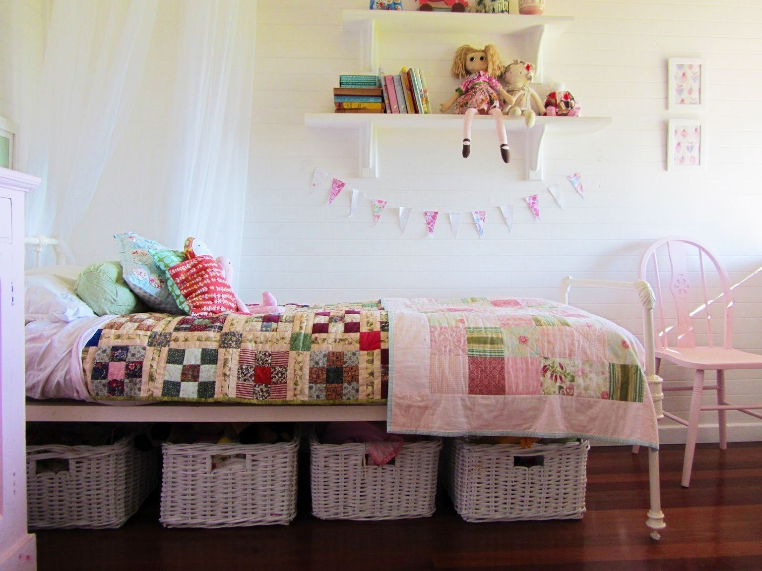 В чем хранить вещи? Идеальный вариант — плетеные корзинки или пластиковые контейнеры с крышками. Еще вариант — деревянные выдвижные ящики на небольших колесиках.