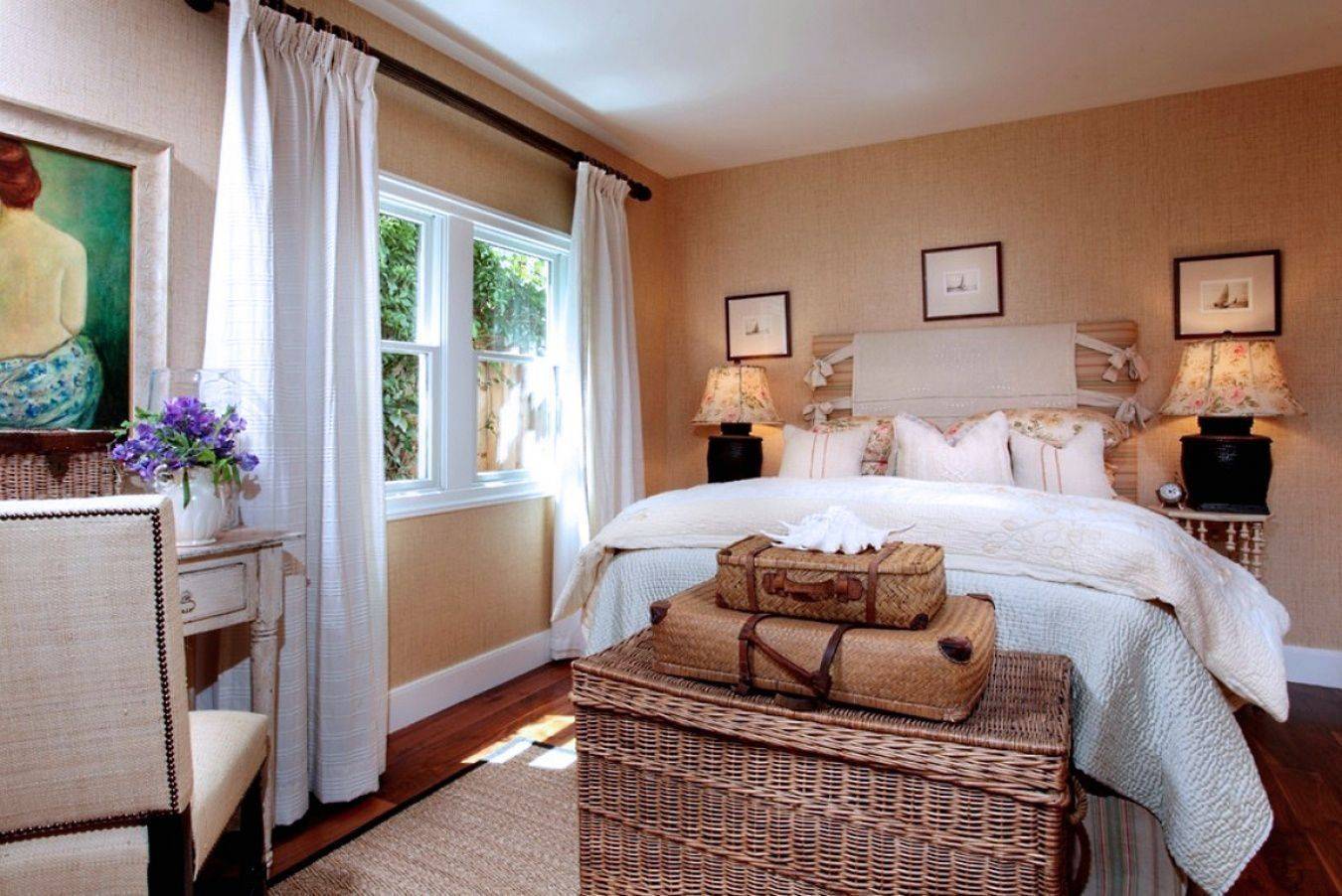 Вместо сундука можно использовать более легкие визуально большие плетеные лари и корзины. Они прекрасно пропускают воздух: используйте их для хранения подушек, одеял или постельного белья.