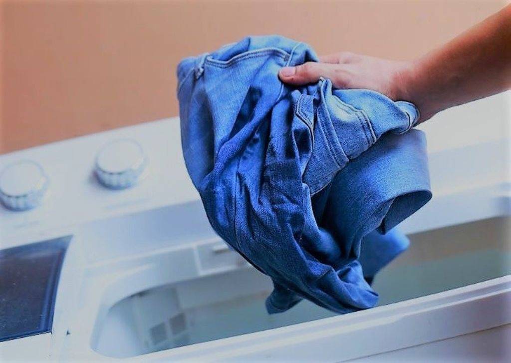 Джинсовая ткань достаточно прочная и стойко окрашена, тем не менее, в горячей воде даёт сильную усадку, теряет цвет. Современные джинсы содержат эластан, поэтому требуют деликатных решений.