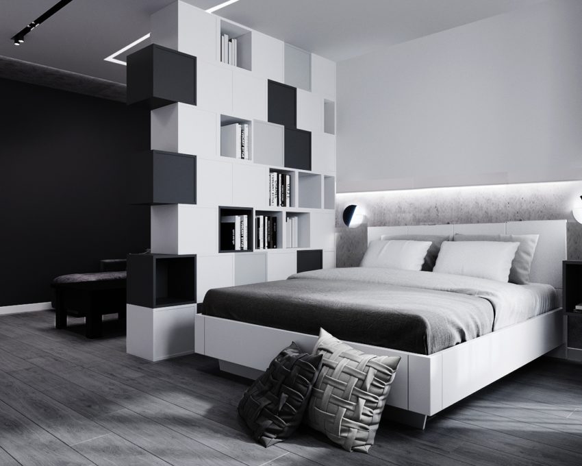 Контраст. Этот прием используют, если весь дизайн выполнен в подобном плане. Вариант декорирования комнаты – в черно-белой гамме. На окно можно повесить светлые портьеры, а на кровать положить темное одеяло.