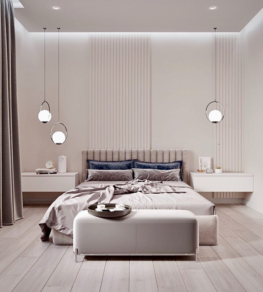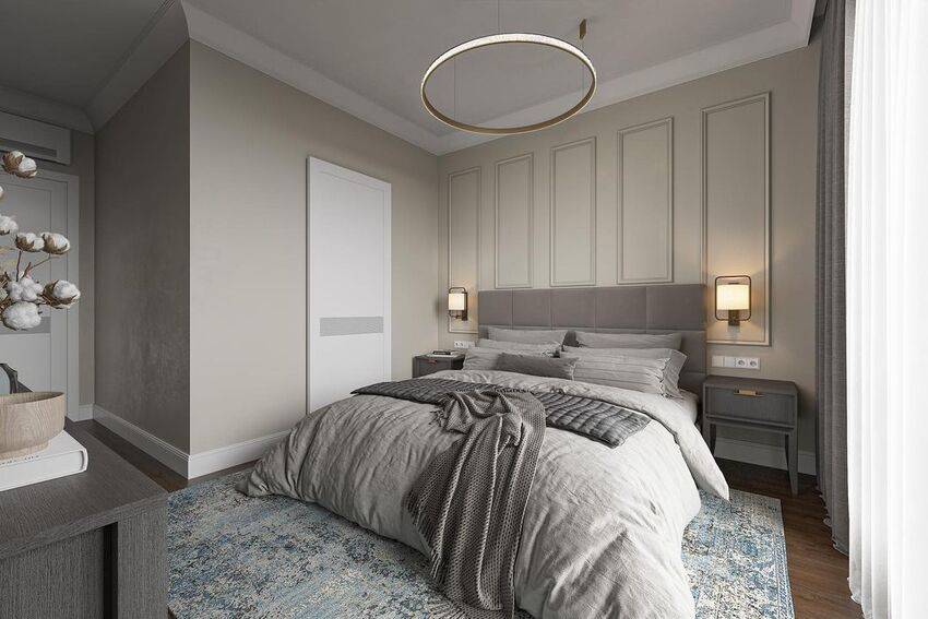 Также имеет значение, как расположена кровать в спальне. Когда к ней есть подход с обеих сторон, то покрывало симметрично спускается по бокам постели.