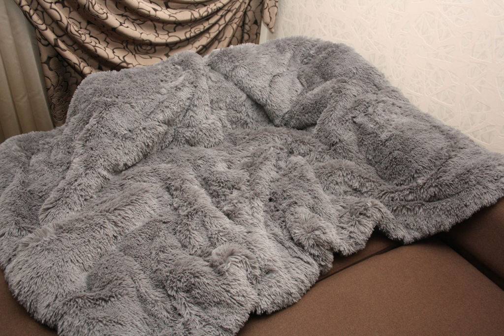 Меховое покрывало-одеяло с длинным ворсом, утепленное холлофайбером