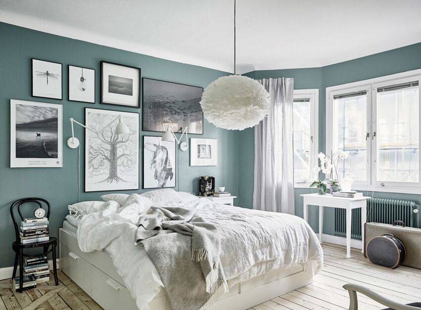Во-первых, цвет покрывала и штор все же может сочетаться. Но сейчас такое решение используется преимущественно для воссоздания строгих классических стилей. Если интерьер вашей спальни менее требовательный, можно подобрать цветное покрывало, рисунок которого гармонирует с оттенком штор, или наоборот. Если же вы хотите использовать однотонное покрывало, добавить гармонии в комплект можно с помощью декоративной дорожки, которая кладется поверх покрывала, подходящей под цвет штор.