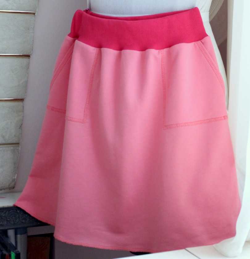 Пояс юбки шьётся на резинке, что отменяет дублирование.
