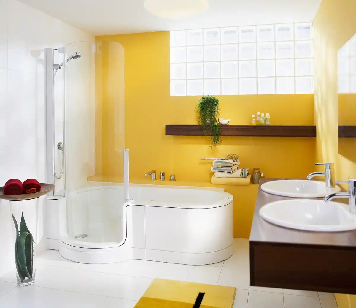 Желтый цвет дизайна ванной комнаты — краска для бодрости