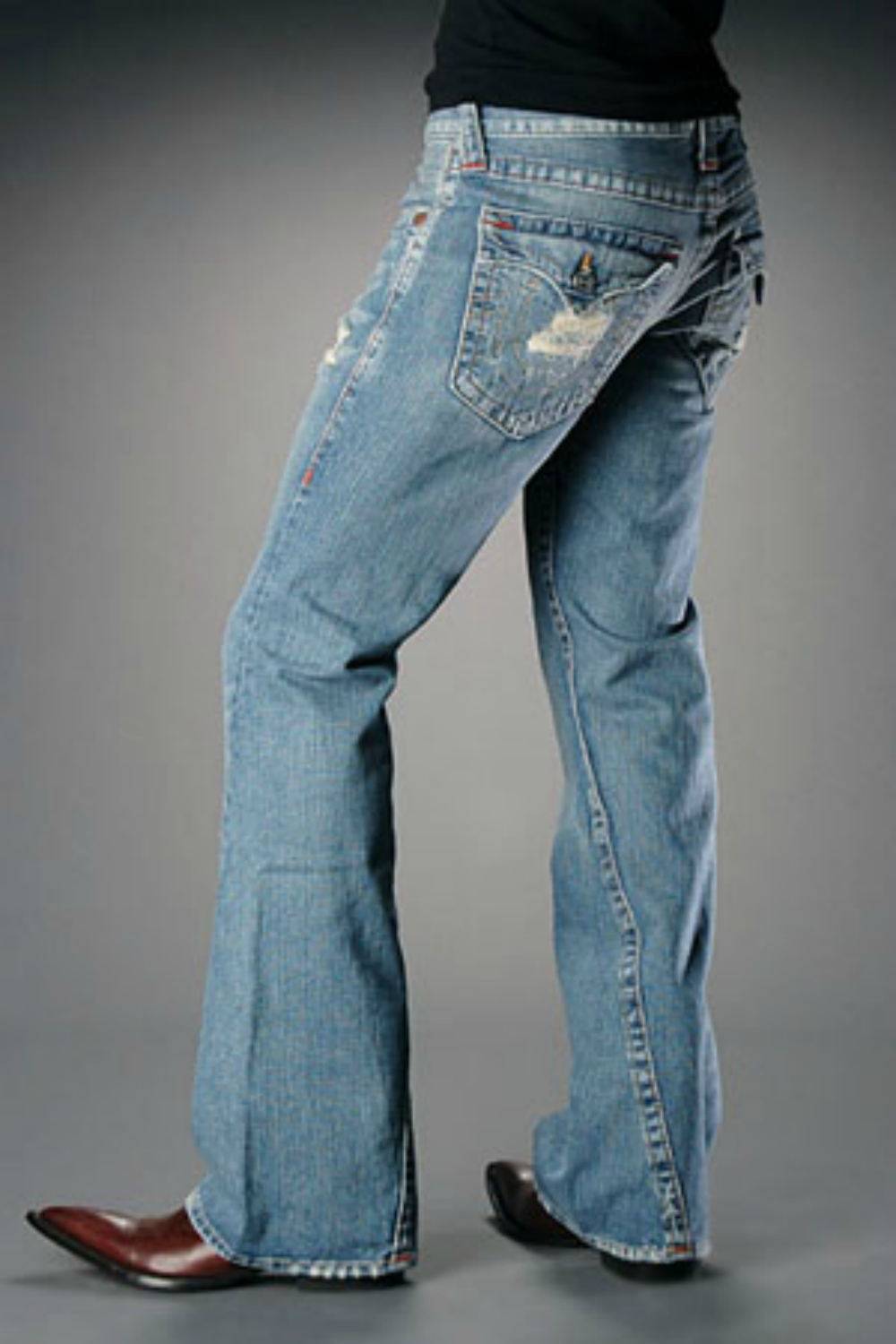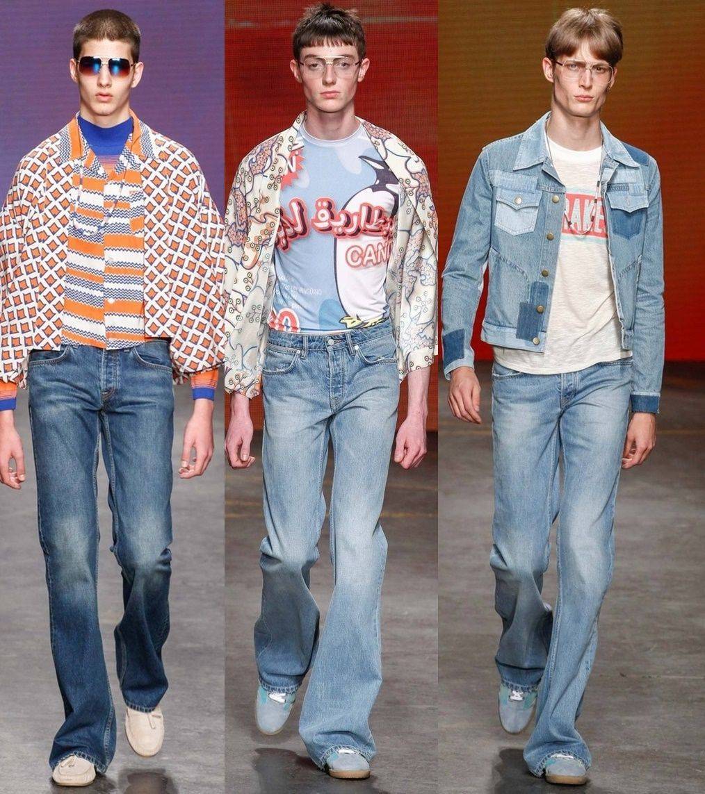 Длина джинсов для мужчин фасона клеш подбирается по обуви. Здесь не применим ни классический, ни «европейский» манер, нужно, чтобы штанины почти полностью скрывали обувь, но при этом не мешали движению. В виде компромисса между модой и удобством можно остановиться на длине, закрывающей половину каблука и не доходящей до пола на 1 см.