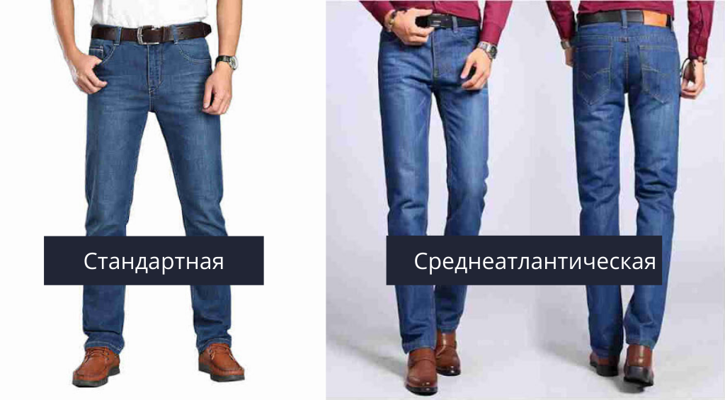 Еще джинсы различаются по глубине посадки. Самая распространенная модель — regular — посадка у них чуть ниже талии. Low rise — джинсы с заниженной талией, а high rise — соответственно, с завышенной.