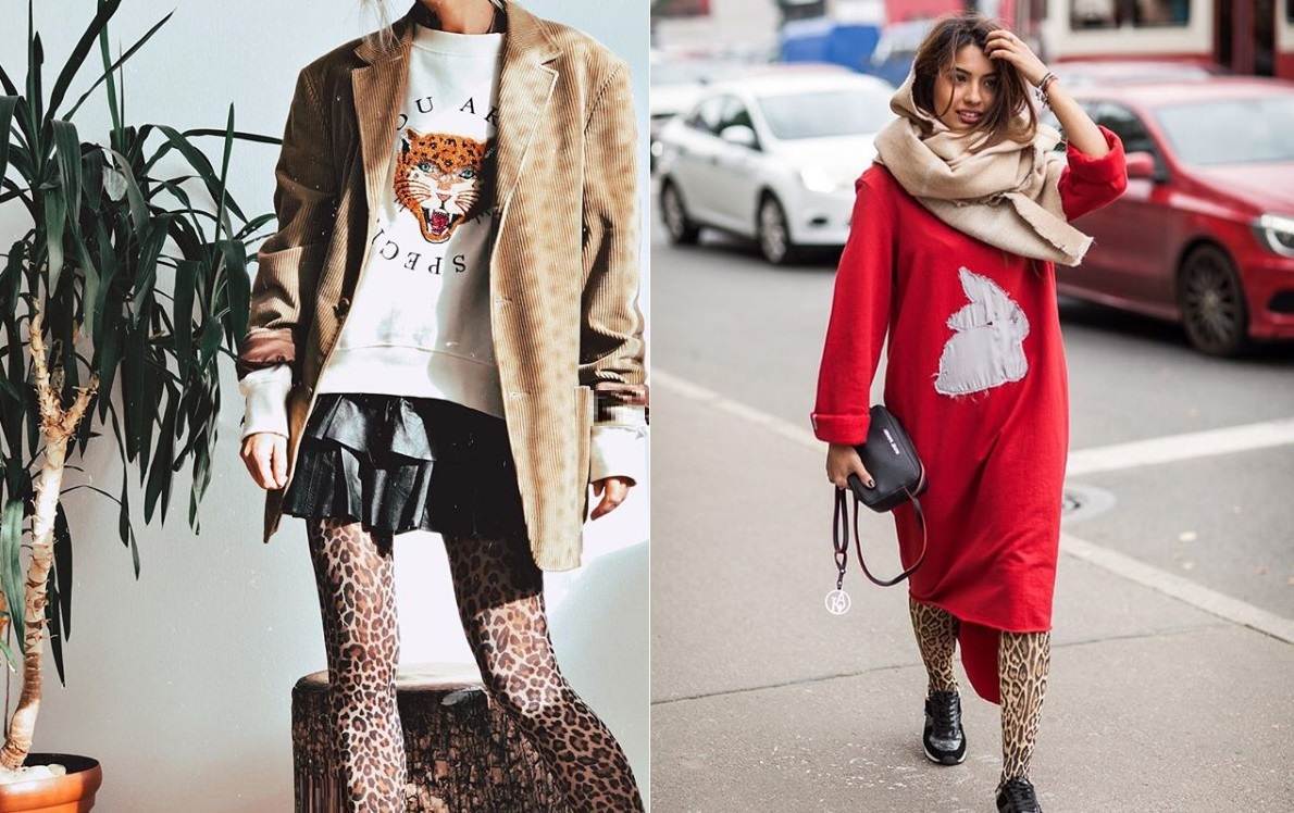 Леопардовые колготки осень-зима 2021 модные тренды с чем носить фото