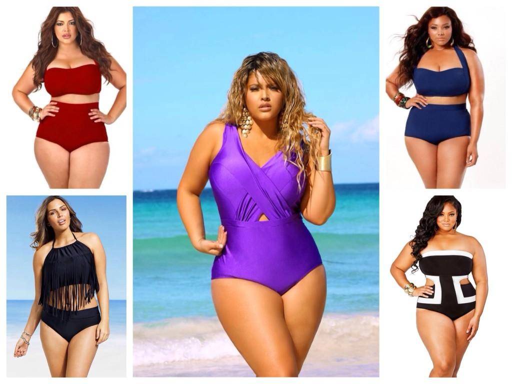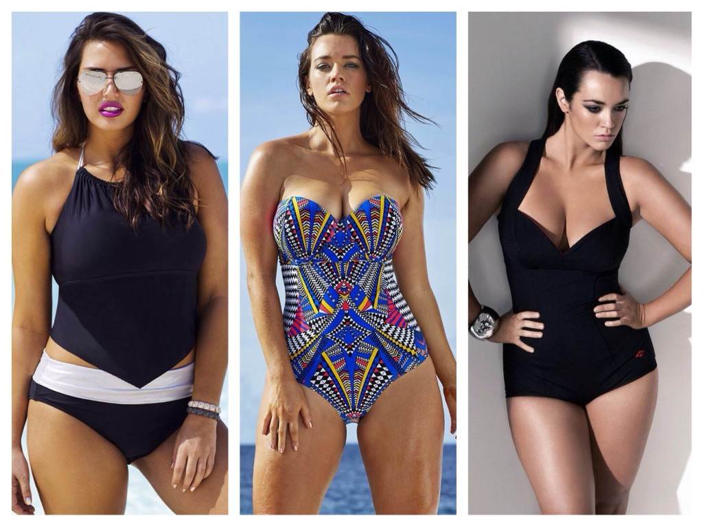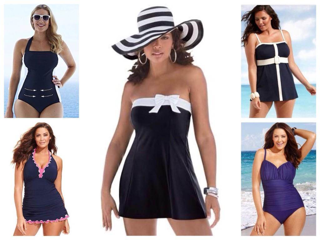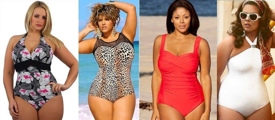 Если у вас полная фигура — выбирайте с вырезом средней длины по бёдрам, с чашечками на «косточках», широкими бретельками и достаточно низким вырезом. Также, если вы хотите подтянуть живот и бёдра, поищите с утягивающими вставками либо из комбинации нескольких видов тканей различной растяжимости – вы убедитесь, что они просто творят чудеса! Главное избегайте блестящих тканей, поперечных полосок и пёстрых расцветок, отдавая предпочтение вертикальным отделкам.