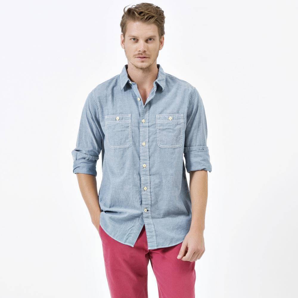 Спортивные рубашки – это полная повседневность. Здесь можно возразить, что это не спортивные рубашки, а рубашки в стиле casual (кэжуал). Я так не считаю. Стоит отметить, что есть рубашки с элементами практически всех стилей: милитари, сафари, этнос, аванград. А в самом стиле кэжуал есть ещё три подстиля: смарт-кэжуал, спорт-кэжуал и бизнес-кэжуал. Так куда же в итоге отнести все рубашки, кроме классических? Предлагаю остановиться на спортивном определении – это просто и понятно для всех. Для спортивных рубашек гораздо больший диапазон расцветок, а рисунки смелее и разнообразней. А ещё есть эполеты, декоративные застежки, большое количество карманов, молний, дополнительные пуговицы и строчки. Материалы используются немного грубее, прочнее. Это может быть простой оксфорд, шамбре, фланель, деним. Кстати, последние, джинсовые, возвращают снова свою популярность после триумфа в 80-х годах прошлого столетия. Не бойтесь надевать рубашку из денима с джинсами, при условии, что низ будет темнее.