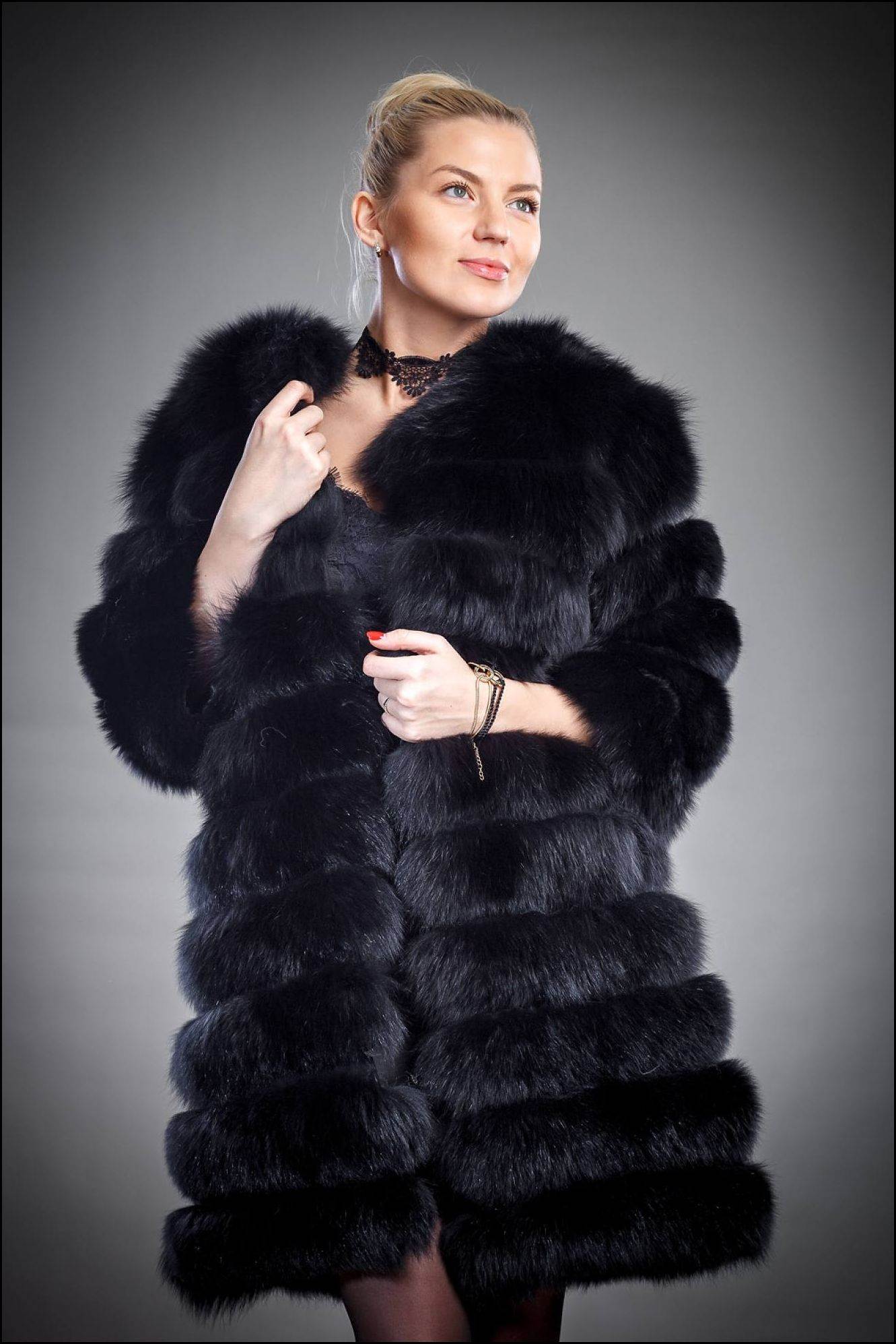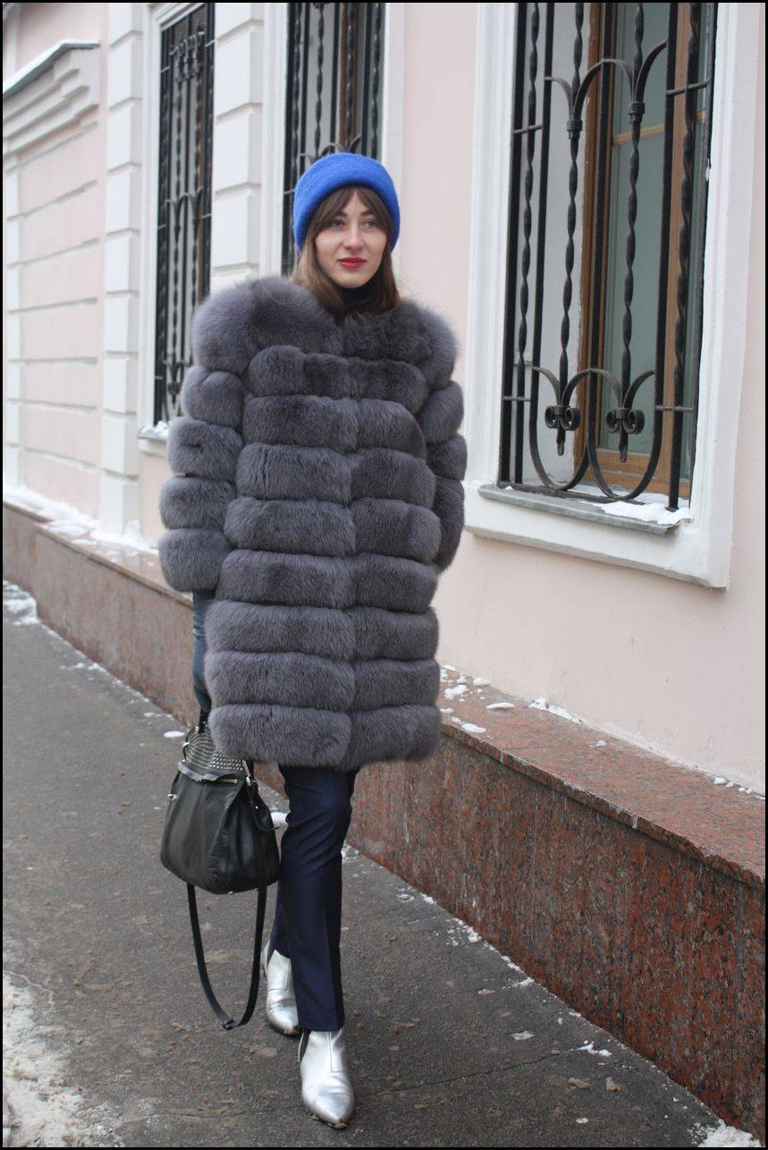 Шубы из цветного песца и фото моделей из голубого, черного и белого меха