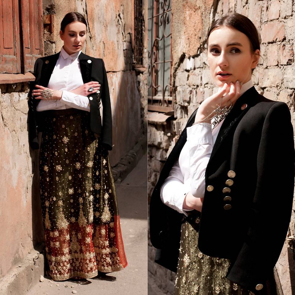 Если нужно создать вечерний наряд для торжественного мероприятия или свидания, жакет хорошо скомбинировать с пышной игривой юбкой или платьем в пол. Хорошо, если такой пиджак выполнен из бархата, атласа или натурального шелка. Часто вечерние модели декорированы стразами, пайетками или вышивкой.