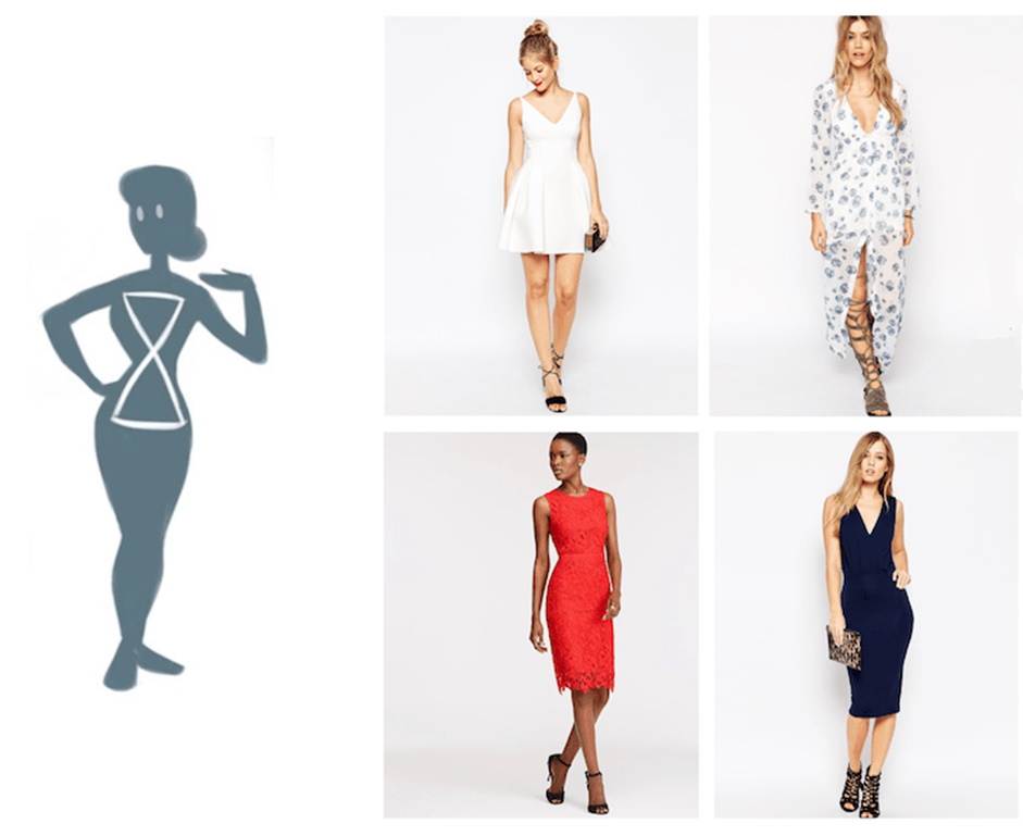 Таким женщинам повезло. Корректировать здесь нечего, поэтому можно надевать любое понравившееся платьице. На такой фигуре всегда стильно смотрятся платья с V-образным вырезом, запахом и поясом, так как они подчеркивают роскошную узкую талию.