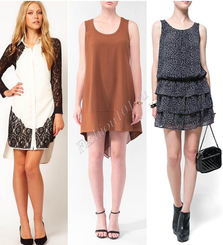 Короткое платье-трапеция скроет животик и откроет стройные ножки, что зрительно вытянет силуэт.