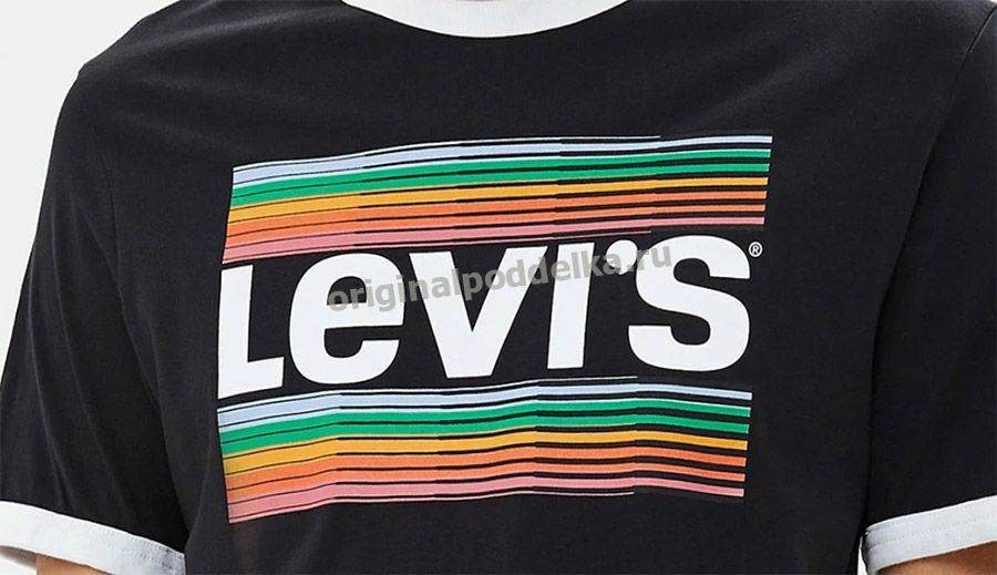 Футболка производства Levi Strauss & Co соответствует характеристикам джинс и другой одежды в вопросах этикеток, типа обработки швов и внешнего вида табов.