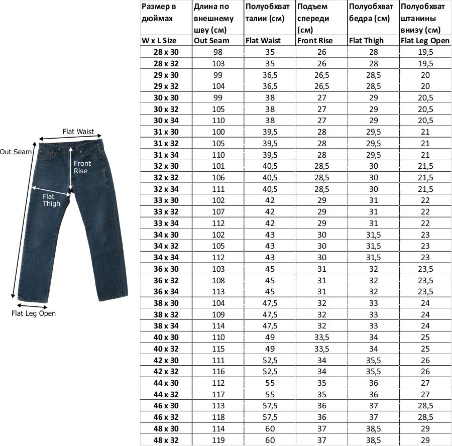 Таблицы размеров джинсов