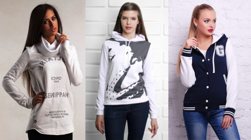 Если толстовка предназначается сугубо для спортивных занятий, то она должна быть максимально комфортной. Лучший вариант – модель с мужским кроем. Если же толстовку выбирают для прогулок по городу, то изделие можно выбрать самое интересное. Производители выпустили толстовки из трикотажа, замши, велюра, с мехом, аппликациями, стразами, вышивкой, камнями.