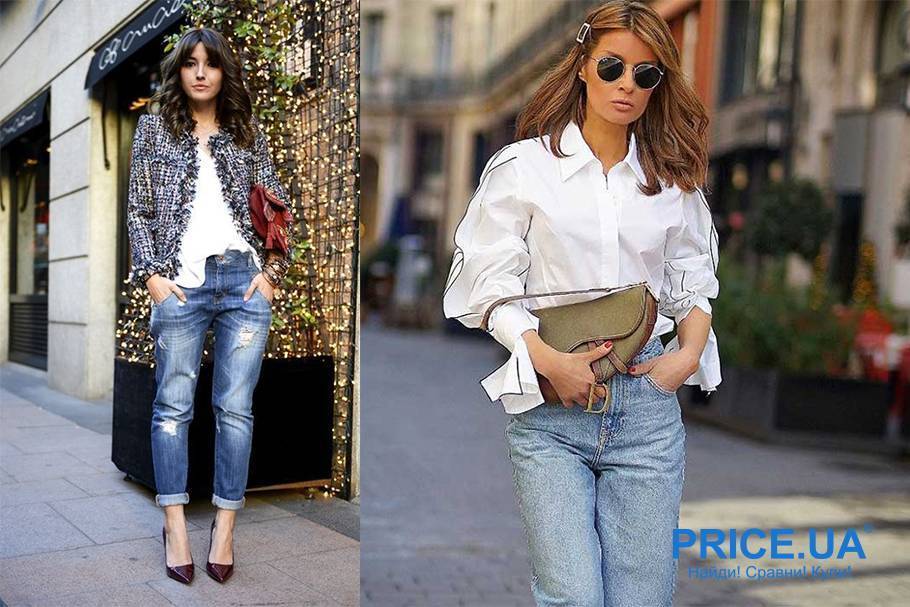 Бойфренды идеально сочетаются практически с любой обувью Судите сами, они отлично выглядят в паре с кедами и с туфлями-лодочками. Что касается верха, то здесь тоже выбор очень большой. Можно сочетать со свободной майкой, толстовкой и косухой. А можно – с классическим пиджаком и шелковой блузой.