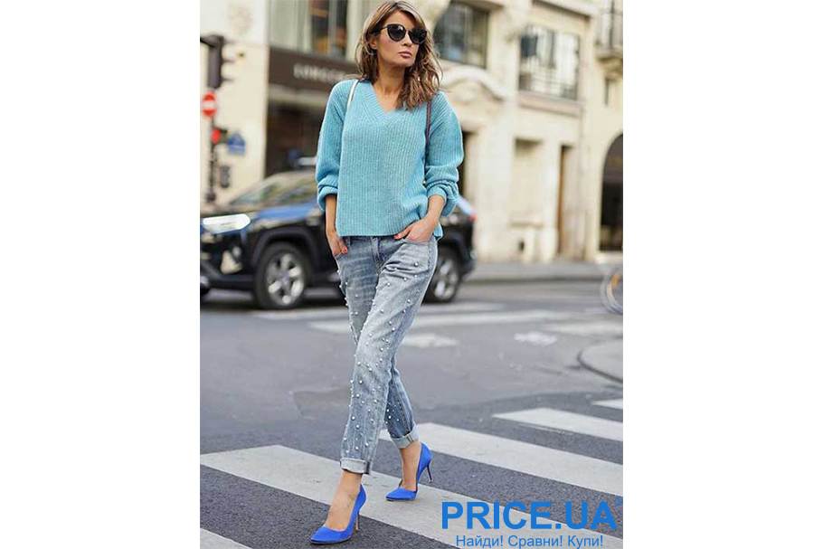 джинсы скорее будут соседствовать с жакетами или пуловерами, потребуется прямой