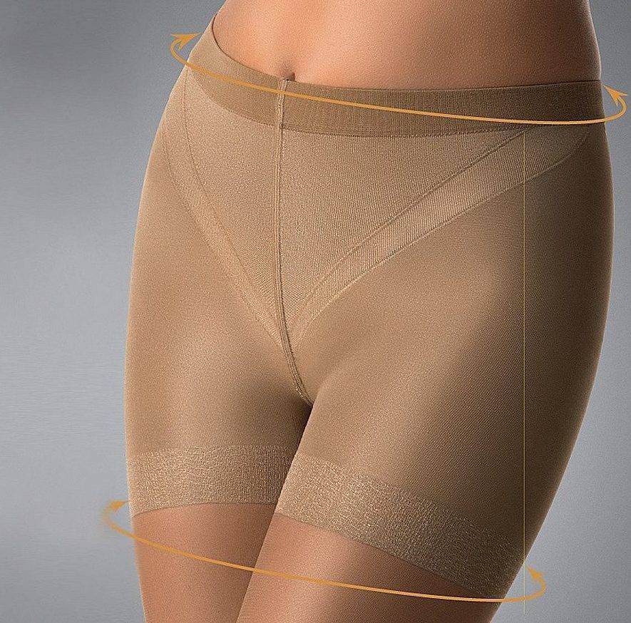 Эти капроновые колготы предназначены для коррекции фигуры. Они зрительно уменьшают объём бёдер, скрывают живот и формируют красивую талию. Утягивающий эффект виден с середины ноги. Входящие в их состав материалы (76% полиамида и 24% эластана) не вызывают раздражение кожи, изделие имеет длинные, удобные шортики с эластичной полоской для придания ягодицам аккуратной формы.
