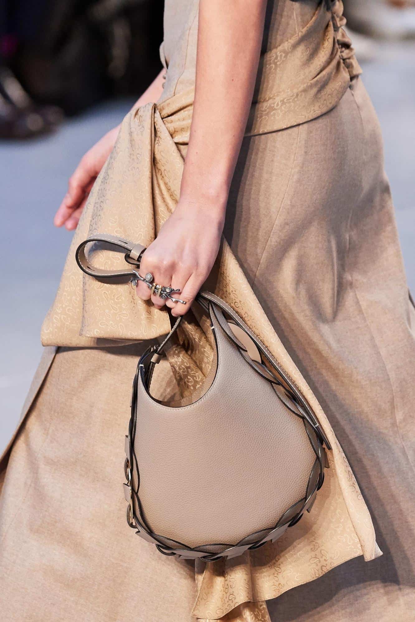 Знаменитая сумка-хобо вновь вернулась на модные подиумы в сезоне 2020/2021. Такая модель сумки была особенно популярна среди девушек-хиппи в 1960-х годах. Тогда сумки-хобо были выполнены из мягкой замши или ткани и гармонично смотрелись с платьями-макси, брюками-клеш и топами с бахромой. В начале и середине 2000-х они вновь вернулись на подиумы. Этой зимой тренд из 60-х и 2000-х представлен в более свежей, современной интерпретации.