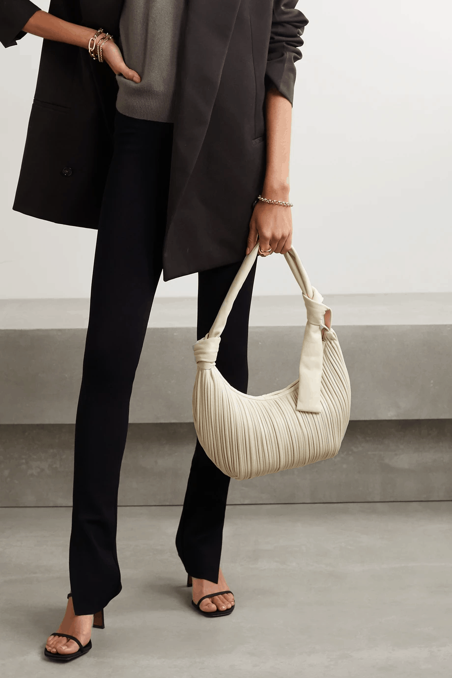 - Ориентируйтесь на гардероб. Выбирая аксессуары, подберите минимум три варианта его носки, например эта сумку можно носить с джинсами, кюлотами и сафари.