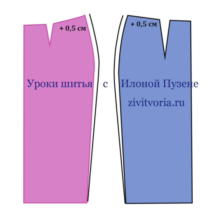 - Снижают раствор вытачек локтя на пол сантиметра и приподнимают на этот промежуток нижний срез от рукава.