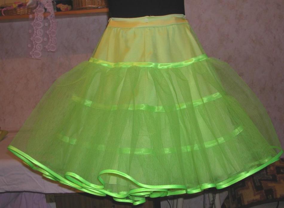 Для юбки с несимметричным низом используется закрытый способ. Этот метод применяется с подкладкой или плотной тканью, чтобы затем кринолин не был виден при носке. Подкладка выкраивается, точно повторяя форму юбки. Ее также сначала пришивают к лицевой стороне, как и в открытом варианте. Затем на появившийся припуск пришивают материал. После подкладку утюжат к изнанке и прошивают швейной машинкой. После нужно зафиксировать деталь. Для этого юбку вновь выворачивают лицом, утюжат низ, и, отступив от края, прошивают закрепляющий шов. Чтобы сделать украшение на шею, кроме регилина понадобятся бусины (одного цвета с сеткой или подходящие по оттенку) или крупный бисер. Также можно использовать различную дополнительную фурнитуру: металлические вставки, декоративные цветы, подвески и т.д. Сделать такие бусы довольно просто: в трубчатый кринолин помещают бусы и при желании разграничивают их с помощью кримпов (маркировочных бусин) или шапочек для них. Затем его закрепляют на концах, вдевают соединительные кольца и цепочку. Можно отдекорировать будущие бусы, к примеру, присоединить подвеску. Такие бусы будут неплохим дополнением к наряду. Шляпки можно изготавливать из кринолина разных фактур. Основой может стать мягкий материал белого цвета, а закрепит его уже более жесткий. Цвета также подбираются в зависимости от вкуса.