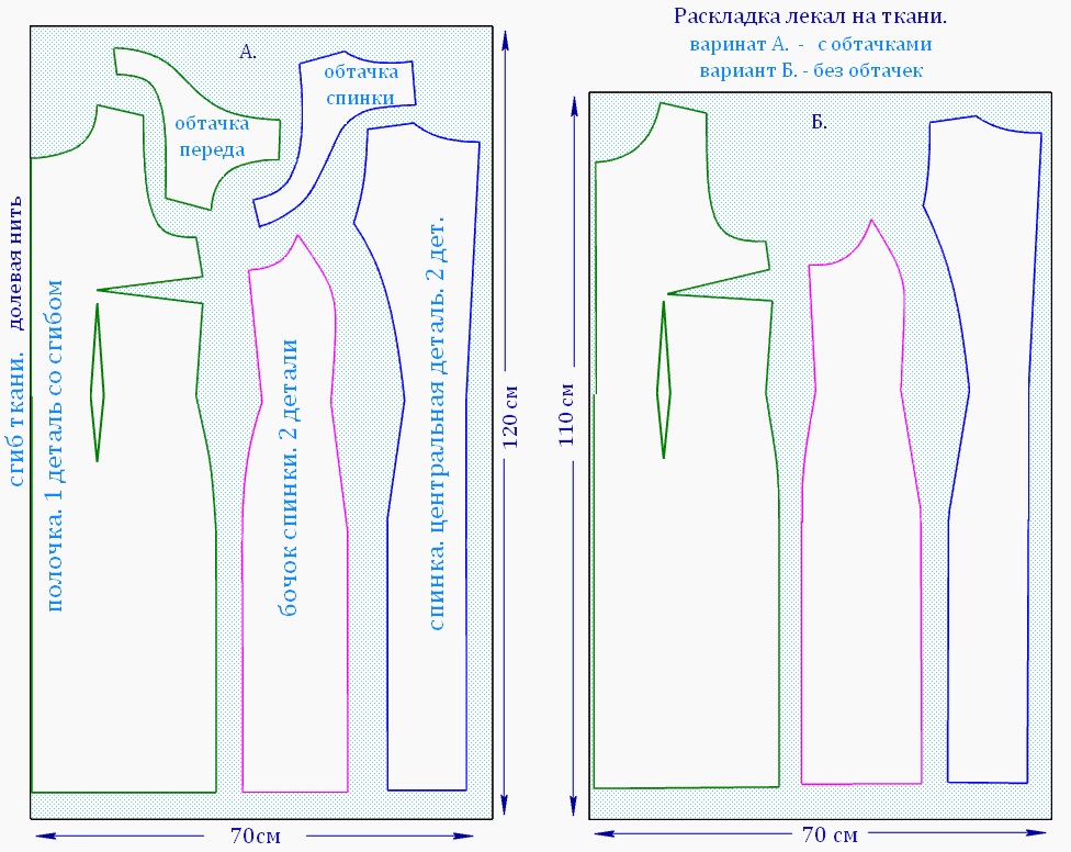 Начинающие портнихи опасаются шить такие модели. И совершенно напрасно – шить реглан даже проще, чем классические рукава. Рассмотрим пошагово процесс шитья платья 48-го размера (ОГ = 98 см, ОТ = 78 см).