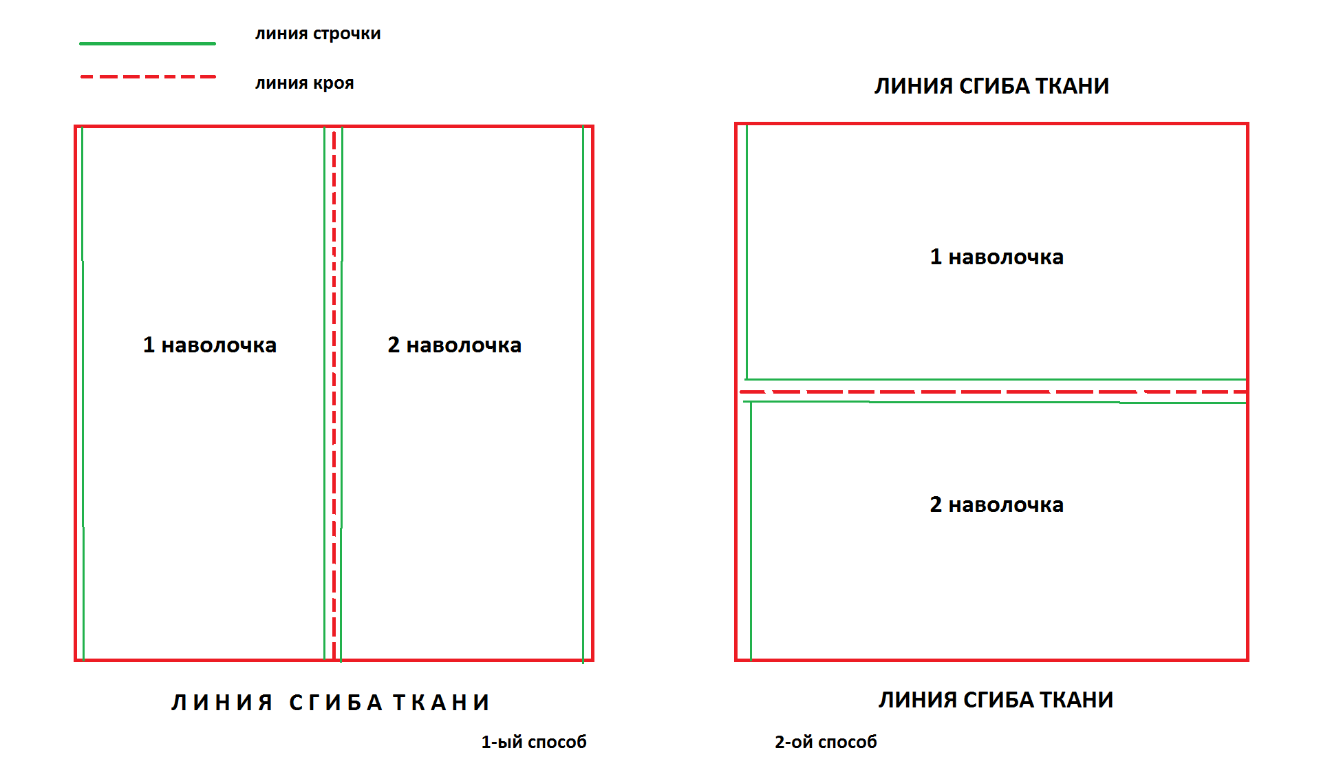 Многие рукодельницы уже сталкивались с пошивом наволочек еще в школе на уроках труда. Принцип пошива отличается элементарными действиями и подготовкой цельной выкройки с запахом. Обычно эскиз выглядел именно так: